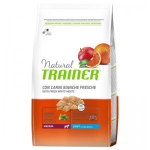 La specifica miscela prebiotica con estratto di Cicoria, FOS e MOS favorisce il nutrimento e il corretto sviluppo del microbiota intestinale. Il suo ridotto contenuto di grassi** e l’inclusione di estratto di fagiolo, che aiuta a ridurre l’assorbimento delle calorie, contribuiscono al mantenimento del peso ideale nel cane tendente al sovrappeso. **Rispetto a Trainer® Natural Adult Medium. L’azione combinata dell’artiglio del diavolo e dei peptidi bioattivi del collagene favorisce il mantenimento della corretta funzionalità articolare. Con Carne Fresca Italiana – Favorisce il regolare mantenimento della massa muscolare magra del tuo cane tendente al sovrappeso, conferendo appetibilità ed elevata digeribilità grazie al valore nutrizionale della carne fresca di pollo e tacchino 100% italiana, disossata e non congelata.