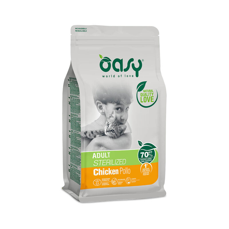 L’alimento Adult Sterilized Pollo, con oltre il 70% di ingredienti animali e benefici specifici per favorire la salute delle vie urinarie e il controllo del peso, assicura ai gatti sterilizzati benessere e vitalità, ogni giorno.