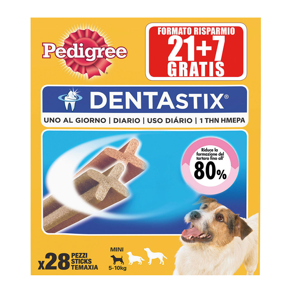 Pedigree Dentastix è un fuoripasto ideale e altamente digeribile per una perfetta pulizia orale del tuo amico a quattro zampe. Pedigree Dentastix riduce fino all’80% la formazione del tartaro, grazie all’azione della sua composizione e i principi attivi ad azione pulente. Questi deliziosi bastoncini Pedigree Dentastix non lasciano resti, sono interamente digeribili. Premia Fido con Pedigree Dentastix e dona a lui gioia e benessere!