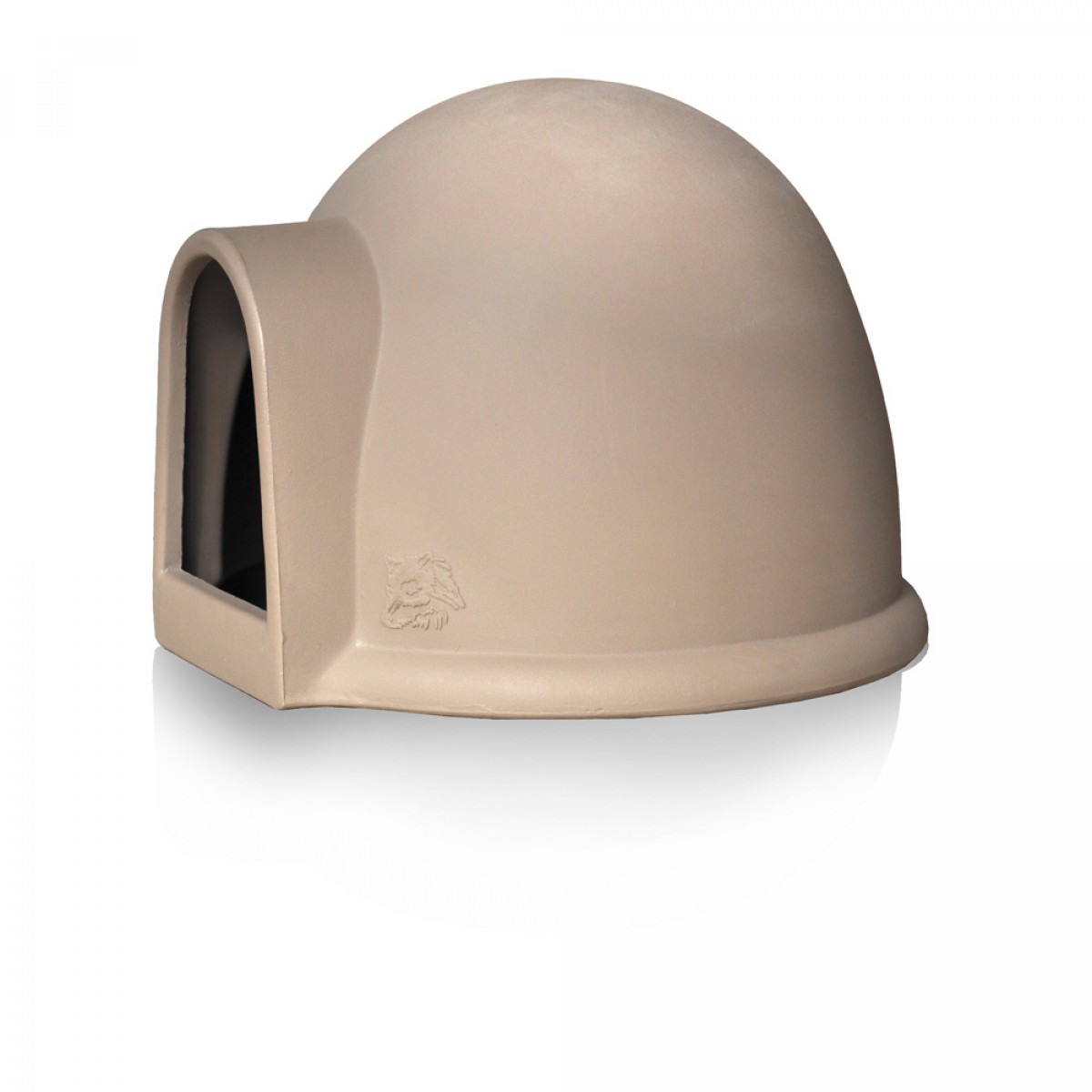 La cuccia per cani Igloo Grande, monolitica e senza saldature, è quindi sicura e priva di tensionamenti strutturali. La parete sferica facilita lo scivolamento di neve, pioggia e vento. La cuccia è molto comoda in quanto la sua forma sferica riprende la posizione che assume il cane quando dorme. La forma particolare del tetto permette di raccogliere e smaltire naturalmente la condensa che si accumula dentro la cuccia. La cuccia è impermeabile, non marcisce, non assorbe odori ed è lavabile con acqua dolce.